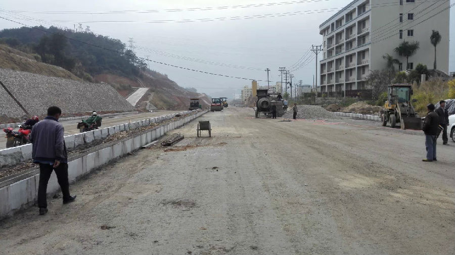 項(xiàng)目情況:項(xiàng)目起點(diǎn)與青竹路相接,終點(diǎn)與已建成的北三環(huán)路(福建龍州工業(yè)園區(qū)段)相連,全長(zhǎng)2700米,寬40米,概算投資20640萬元,分兩個(gè)道路施工標(biāo)段和一個(gè)高邊坡防護(hù)施工標(biāo),于2013年10月8日開工建設(shè)。目前已完成土石方90萬方,約占總量的92%,雨污水管道2100米,約占總量的80%,路基成型1820米,總計(jì)完成投資14000萬元(含拆遷)。目前已開始部分路段路面結(jié)構(gòu)層施工。