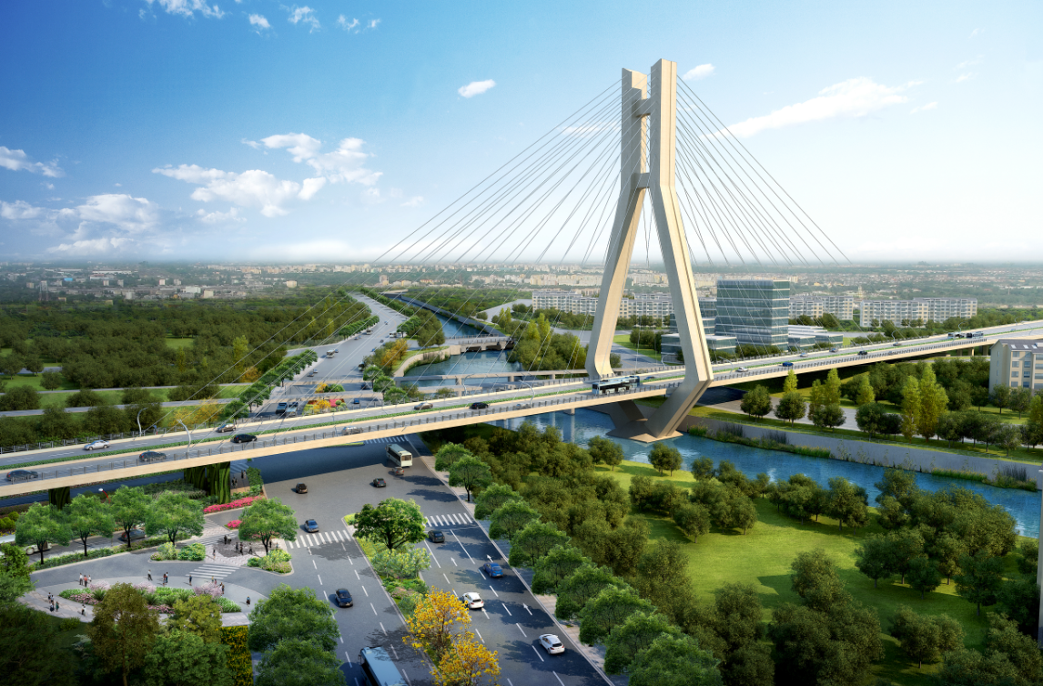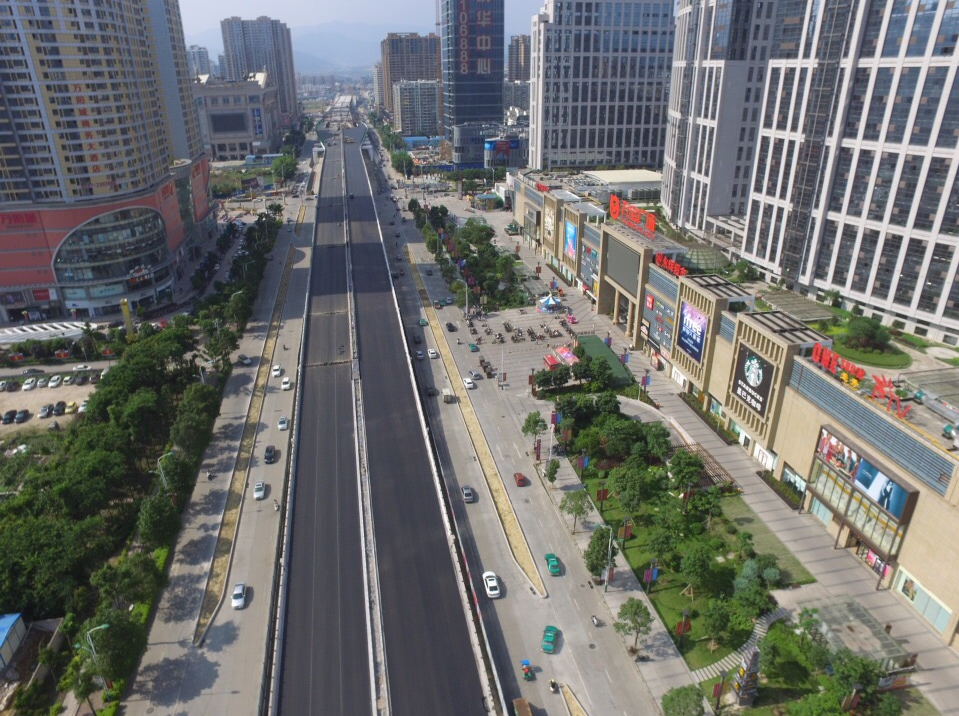 龍巖大道高架橋項(xiàng)目為省、市重點(diǎn)建設(shè)項(xiàng)目,是龍巖中心城市連接南北、溝通新老城區(qū)的重要樞紐,項(xiàng)目位于龍巖市南北交通中心軸和景觀軸線龍巖大道上,全長(zhǎng)3395m,包含橋梁和地面道路兩大部分,其中橋梁工程總長(zhǎng)2329m,橋?qū)?6m,包含一座190+150m獨(dú)塔斜拉索鋼箱梁主橋(主橋?qū)?6.3m),全線設(shè)計(jì)為雙向六車道,設(shè)計(jì)車速60km/h,在西陂路及人民路處各設(shè)置上下匝道,跨越雙洋路、羅龍東路、人民路、登高西路、西陂路城市主干道,項(xiàng)目總投資約24億元。