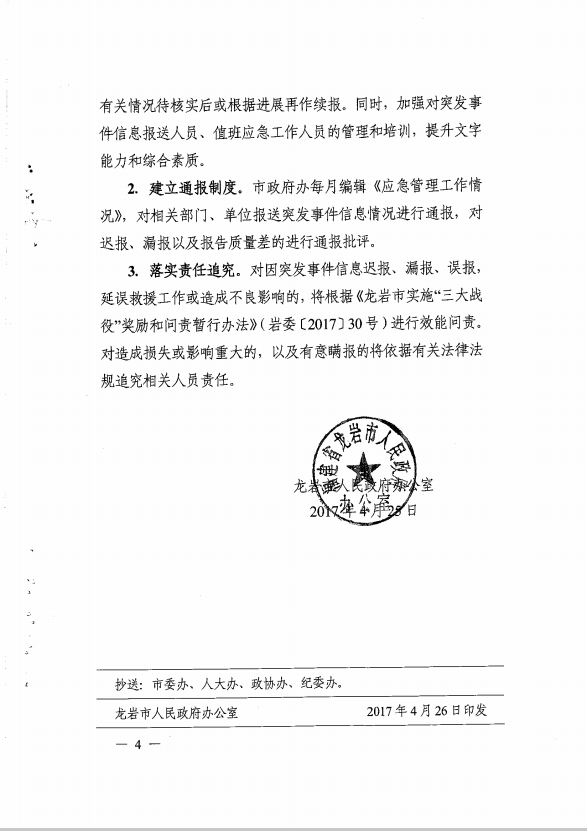 市政府辦關于切實抓好突發(fā)事件信息報送工作的通知(龍政辦【2017】100號)