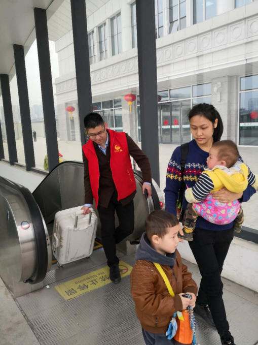 在火車站服務(wù)最需要幫助的有三種人:一種是殘疾人,一種是老年人,另外一種就是一手抱著小孩一手提著行李的旅客。因新建火車站剛剛啟用,“請(qǐng)問(wèn)進(jìn)站口在哪兒?當(dāng)一位拿著大包小包還帶著孩子的旅客問(wèn)到。“在這邊,我來(lái)幫你?!?/span>志愿者一邊指著路一邊接過(guò)旅客手中的包,一路將她送至進(jìn)站口。
