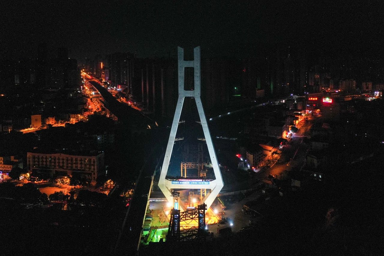 4月10日凌晨,龍巖大橋百米高萬噸主塔完成逆時針69度旋轉,歷時1小時20分鐘左右安全到達指定位置。